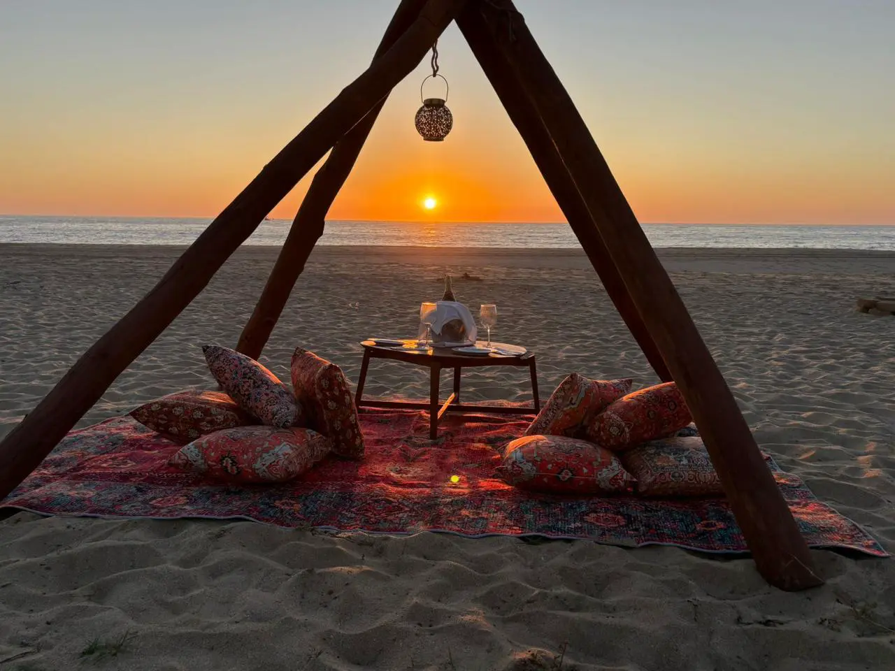Farolas que dibujan sombras cálidas, mesas sobre la arena y el sonido del Pacífico marcando el compás del día.